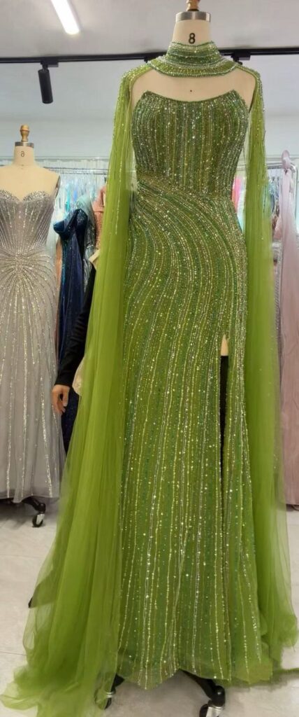 fully beaded green mermaid evening dress