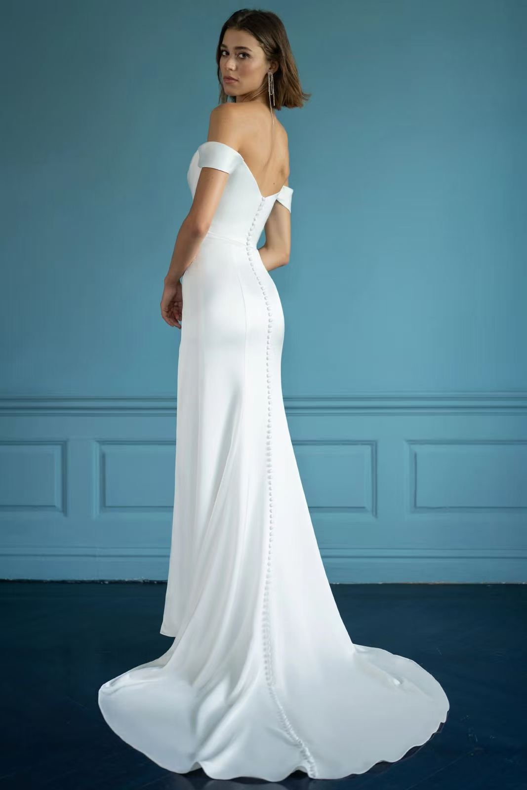 Ida , satin wedding dress off-shoulder sleeve with side slit
